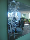 Dies ist ein Beispiel für einen Digitaldruck auf einem Spiegel.